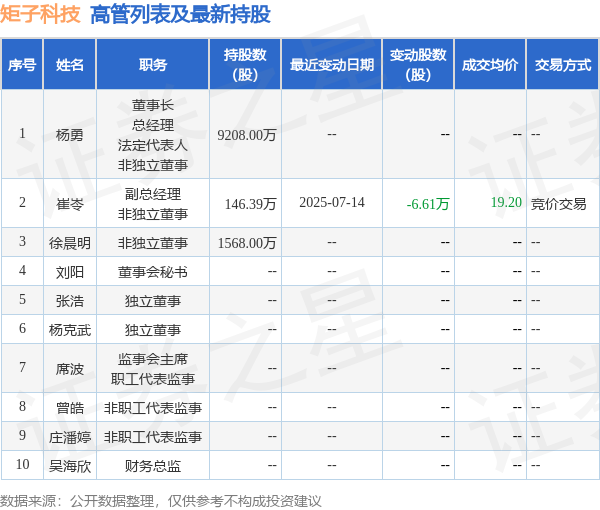 矩子科技的高管列表及最新持股情况如下: